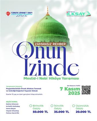 Türkiye Diyanet Vakfı (TDV) İLKSAY, 2025 Mevlid-i Nebi etkinlikleri kapsamında “Zamansız Rehber: Onun İzinde” temalı hikâye yarışması düzenliyor.