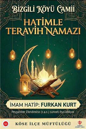 İlçemiz Bizgili Köyü Camii'nde, Bizgili Köyü Camii İmam-Hatibi Hafız Furkan KURT Hocamız tarafından Ramazan ayında hatimle teravih namazı kılınacaktır.