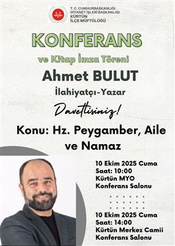 Çarşamba günü saat 13:00 Kürtün Merkez Camii altında Hz. Peygamber ve Aile konulu konferans dinleyeceğiz. Siz kıymetli halkımızı bekliyoruz.