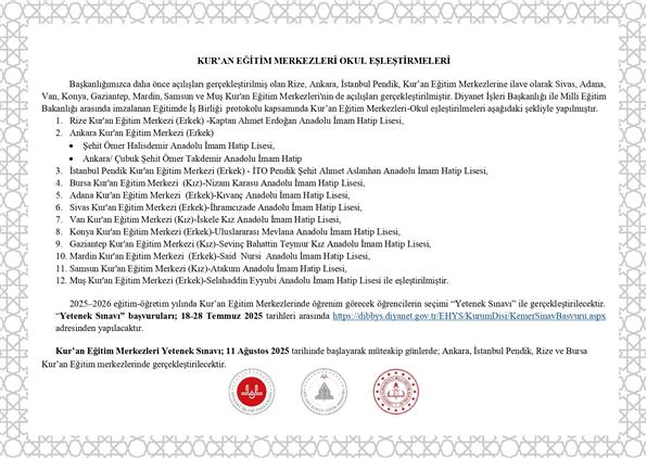 Kur'an Eğitim Merkezleri Okul Eşleştirmeleri
